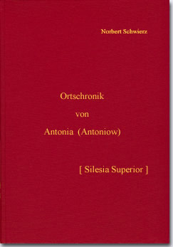 Bonjour, Avant de prendre ma retraite fin Mai 2003, je viens de trouver la page sur l'histoire locale d'Antonia. Je vous félicite pour ce beau travail, et dès que je serai en Allemagne j'essaierai de trouver ce livre. J'aimerais que quelqu'un prenne la même initiative pour parler de mon village Wundichow/Poméranie. Nous avions cette chance de travailler quelques années au SHAPE - en temps de paix. Bonne continuation Une ancienne collègue de SHAPE restée en France. Auch ich als waschechter Niederbayer habe Dein Buch mit großem Interesse gelesen. Es war spannend und brachte mir die Geschichte Deiner Heimat,Dein Flüchtlingsschicksal und das vieler Ostdeutscher näher. Deshalb habe ich es als trauriges, aber sehr notwendiges Buch empfunden. Herzlichen Glückwunsch dazu. Dein Schulfreund Ludwig. Hallo Herr Schwierz, hätte mich schon längst eingetragen, aber habe von Ihrer Homepage erst kürzlich erfahren - bin in letzter Zeit ein wenig rumgekommen. Als echter Antonianer kann ich die Ortschronik jedem wirklich wärmstens empfehlen - sehr informativ und gut geschrieben. Obwohl ich selbst 18 Jahre in Antonia gelebt habe, habe ich viele Details und die Geschichte meines Dorfes erst in Ihrem Buch kennen gelernt. Jeder, der sich für diese Thematik interessiert, wird Ihnen sicherlich sehr dankbar sein, für die Mühe und jahrelange Arbeit und Recherche, die Sie in dieses Werk investiert haben... Viele Grüße, Teilübersetzungen in englischer und polnischer Sprache, der Beitrag "Die Juden in Oberschlesien, in Antonia" auch in hebräischer Übersetzung, vervollständigen die Chronik. Großformat, Ganzgewebeeinband mit Goldprägung, Das Buch ist zur Zeit vergriffen. Es liegt aber in